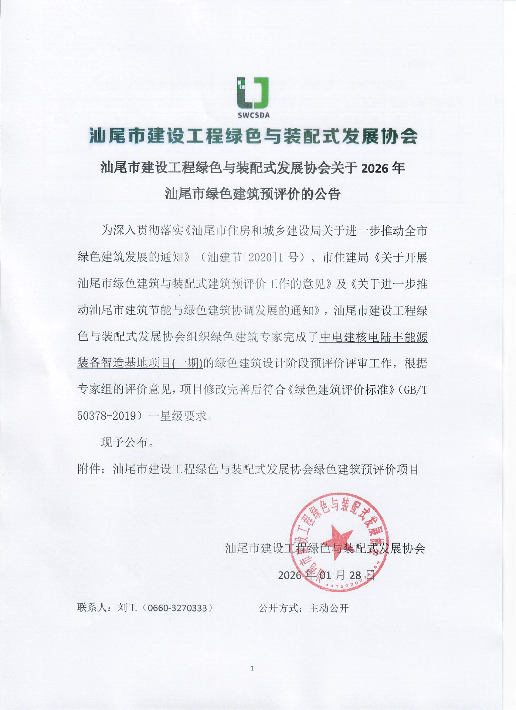 中电建核电陆丰能源装备智造基地项目(一期)的绿色建筑预评价公告